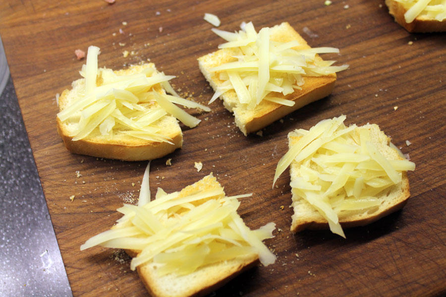 Mit geriebenem Bergkäse bestreuen und unter dem Grill im Backofen überbacken.